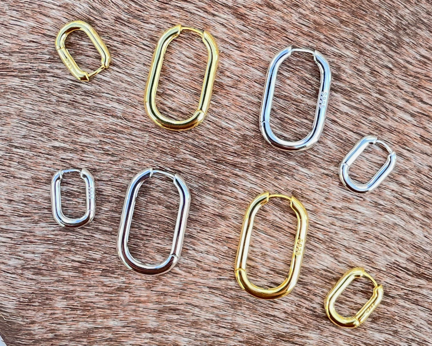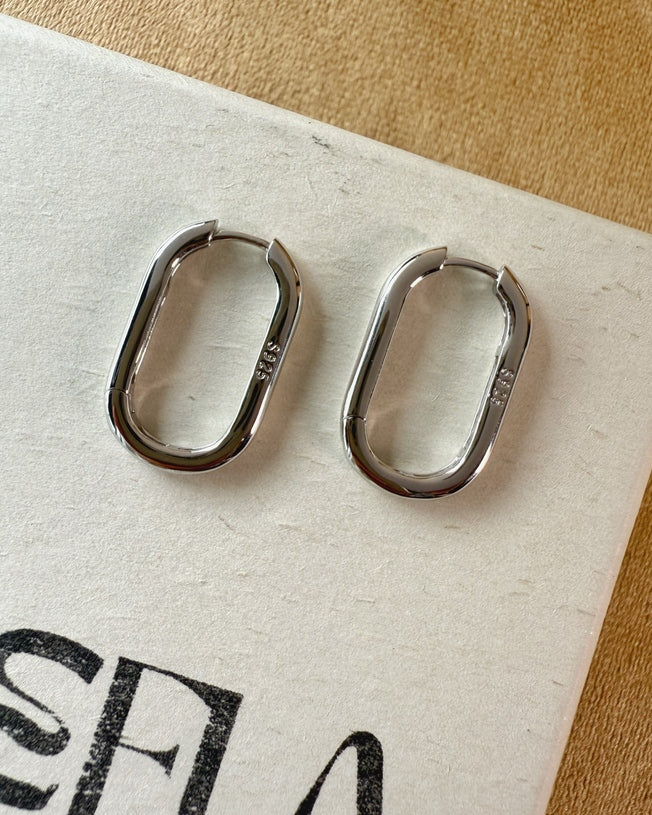Clean lines meet bold edges — the Eterna Square Hoops are crafted in 925 sterling silver, available in 18k gold vermeil or white gold plating. With their geometric silhouette, these hoops add a modern twist to the classic hoop earring, perfect for layering or wearing solo.
