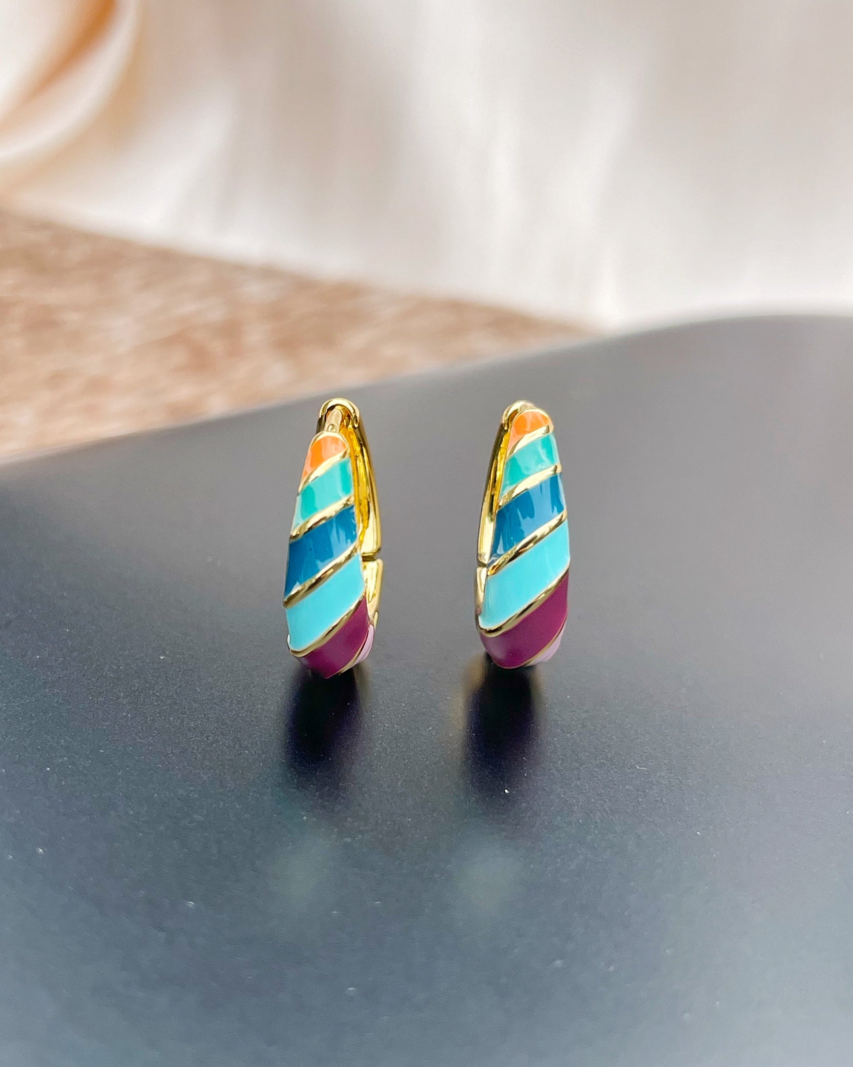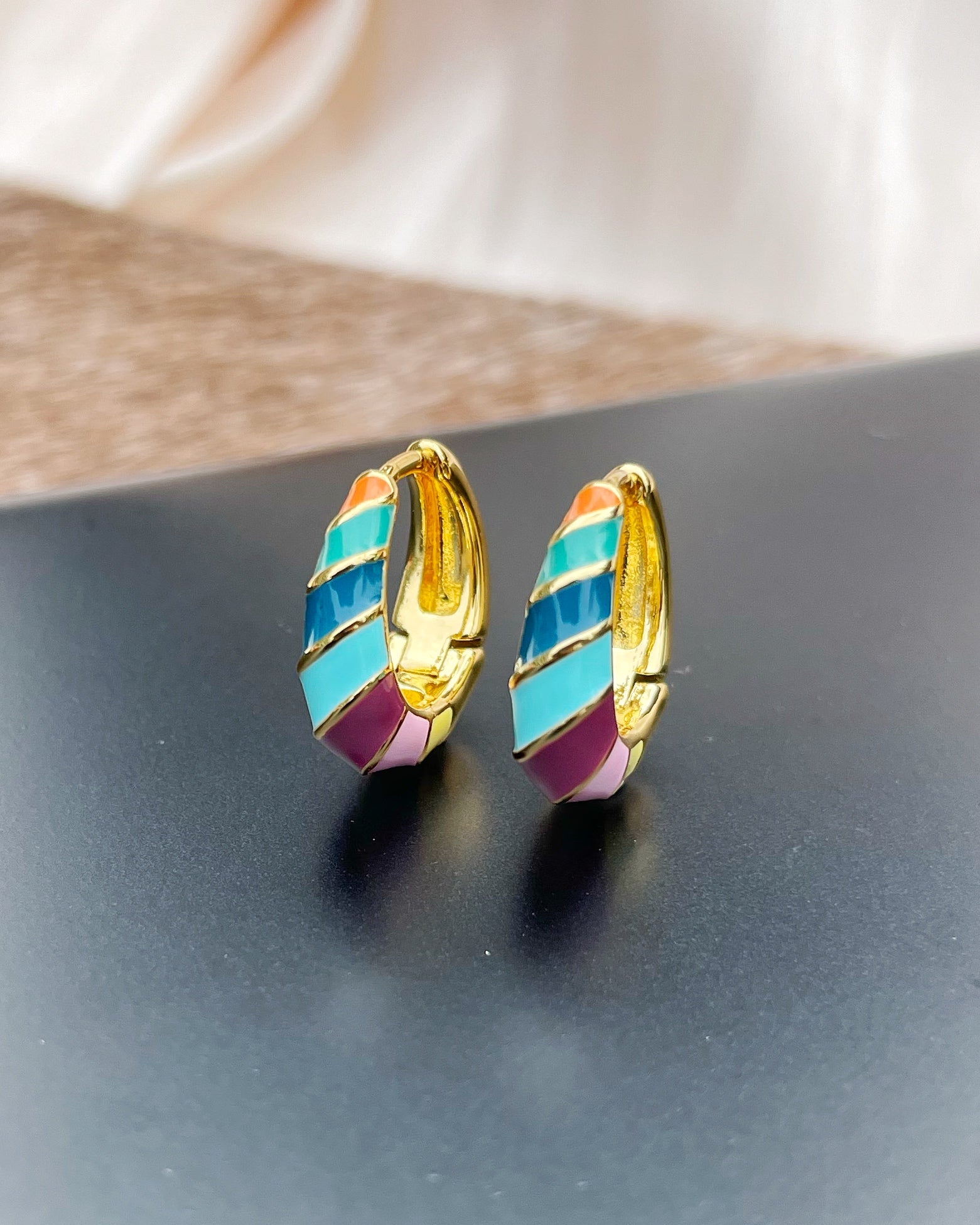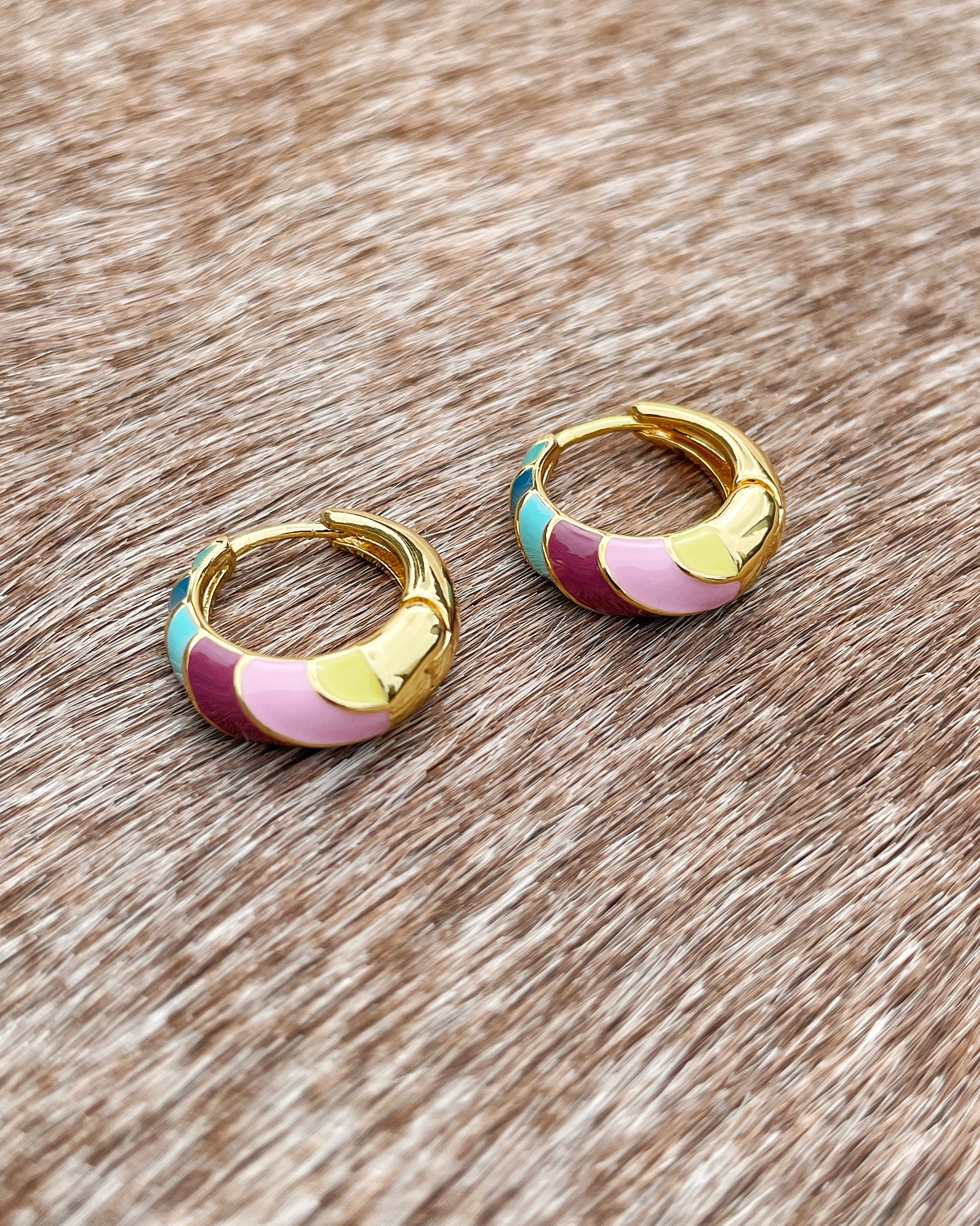 A little color goes a long way. The Joystripe Hoops feature bold enamel stripes in playful shades wrapped around a gold huggie silhouette.