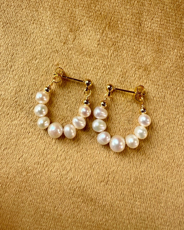 A circle of freshwater pearls, simple and luminous. Light on the ears, timeless in style — made to glow with you, every day.