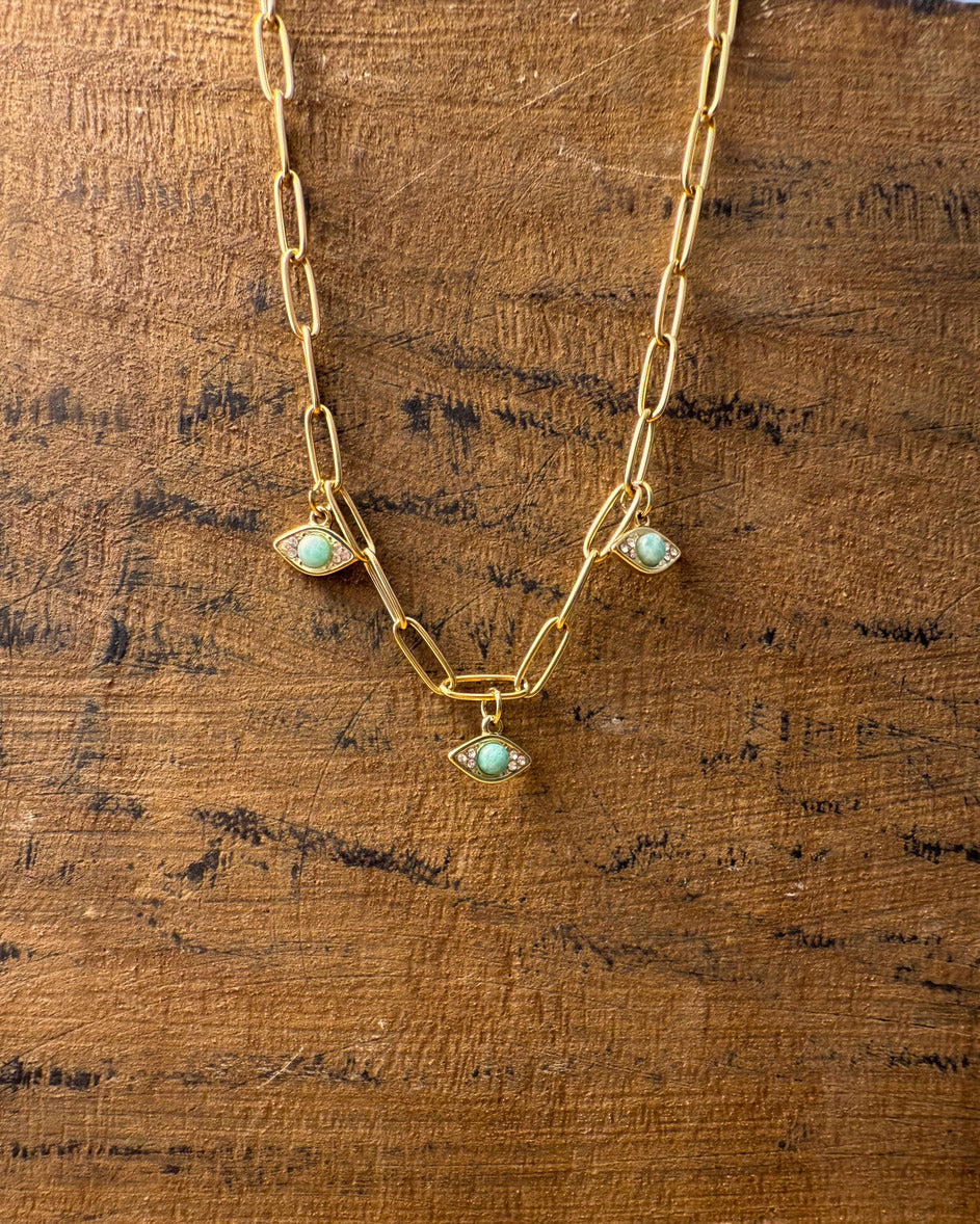 Triple Guardian Necklace – Amazonite Evil Eye Charms