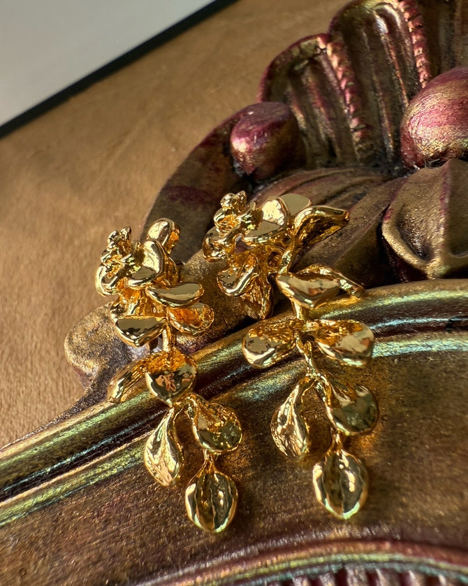 A cascade of golden petals frozen mid-fall — these earrings capture the fleeting beauty of nature in a sculptural form. Each petal gleams with liquid shine, flowing gracefully as you move. Bold yet fluid, they are crafted for those who carry elegance with strength.
