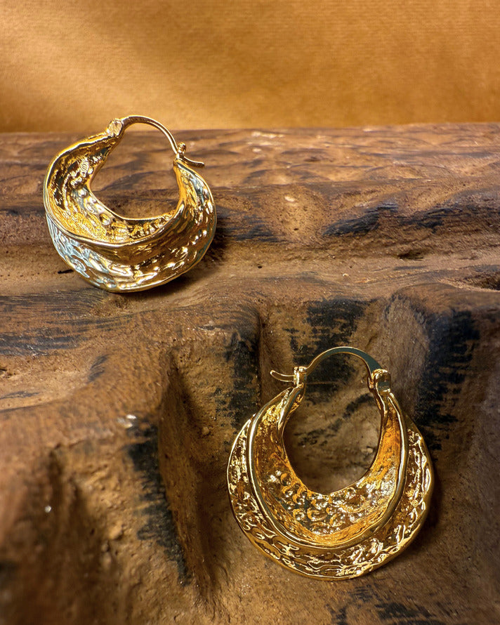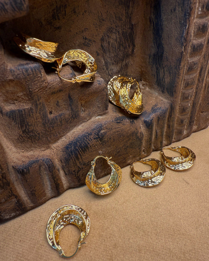 Sculpted like flowing metal, the Molten Gold Hoops feature organic curves and a textured liquid-gold finish.