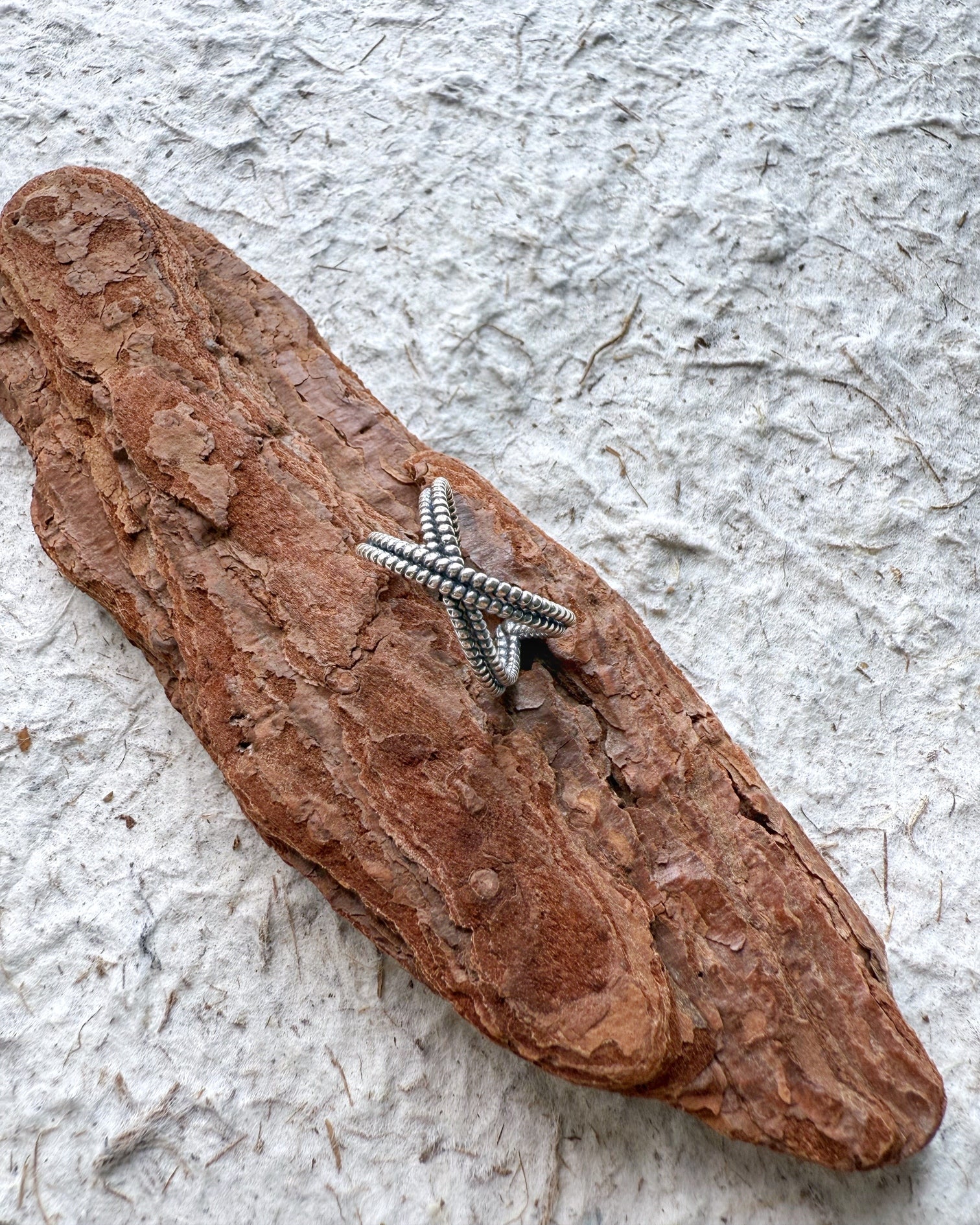 With its ridged surface and silver shine, this piece is raw, grounded, and ready to stack or stand alone.