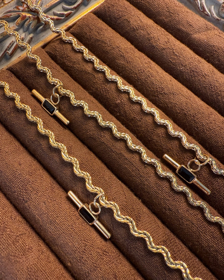 Twist Rope Necklace – Black/ Green Zircon